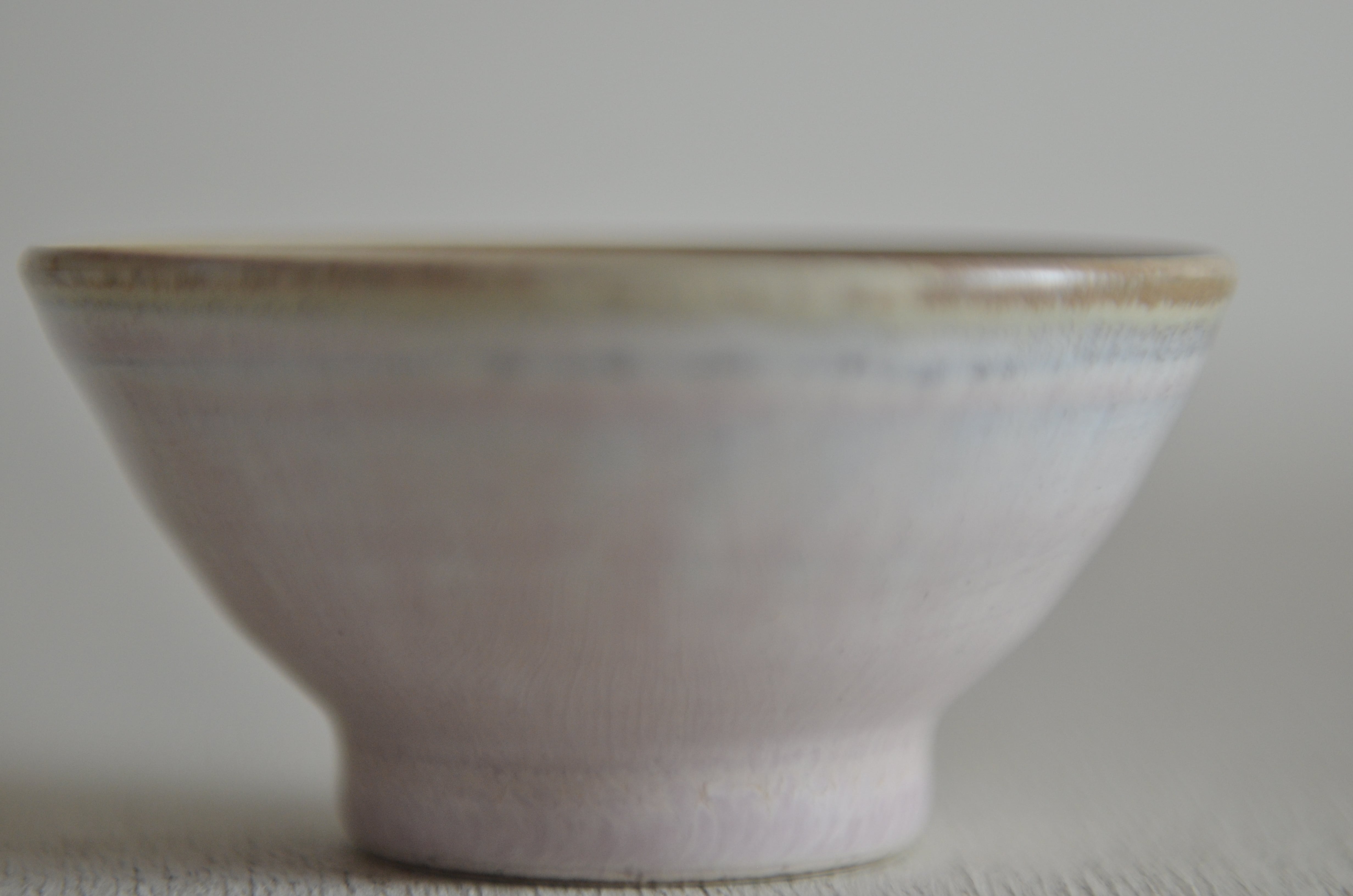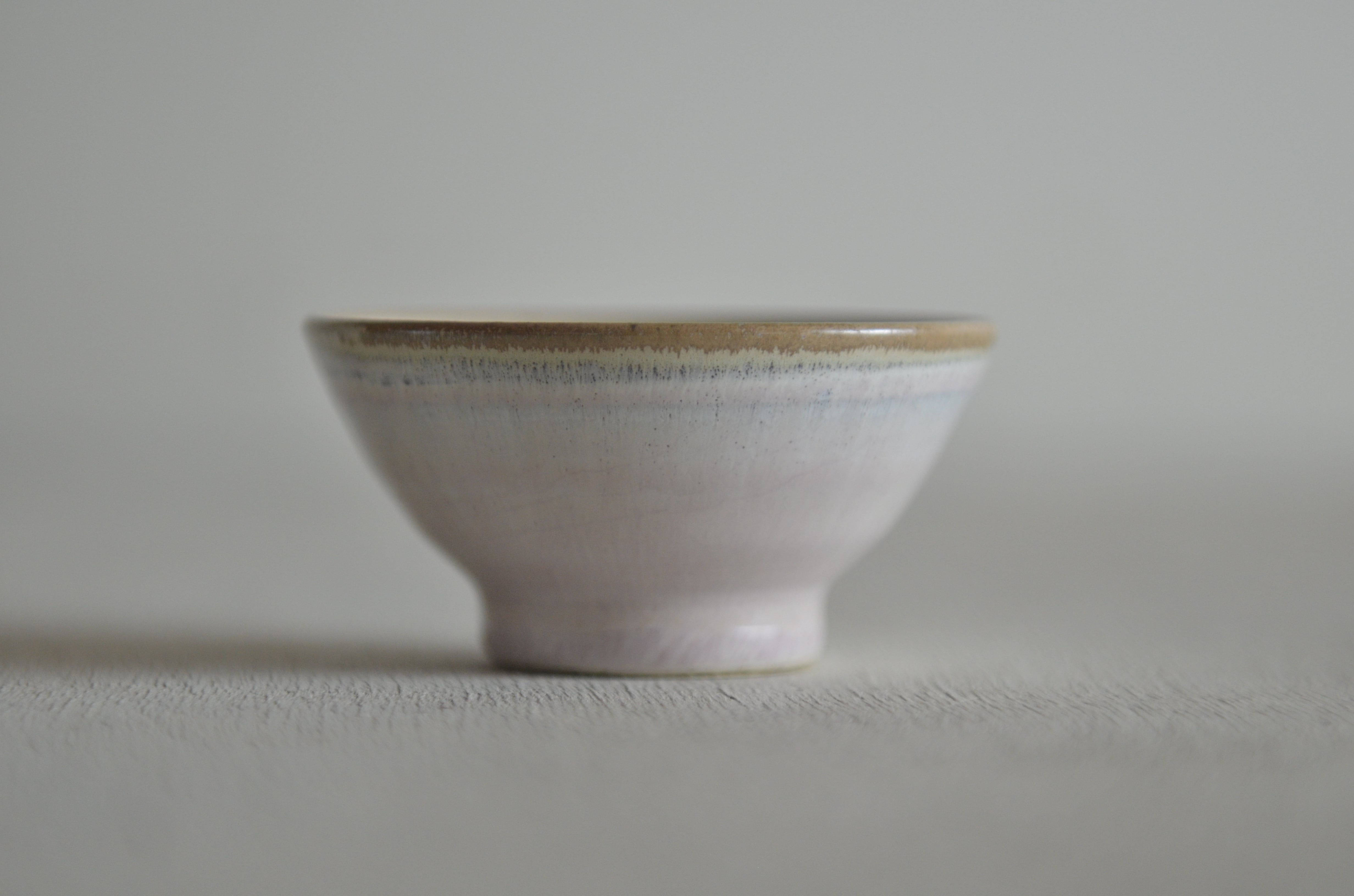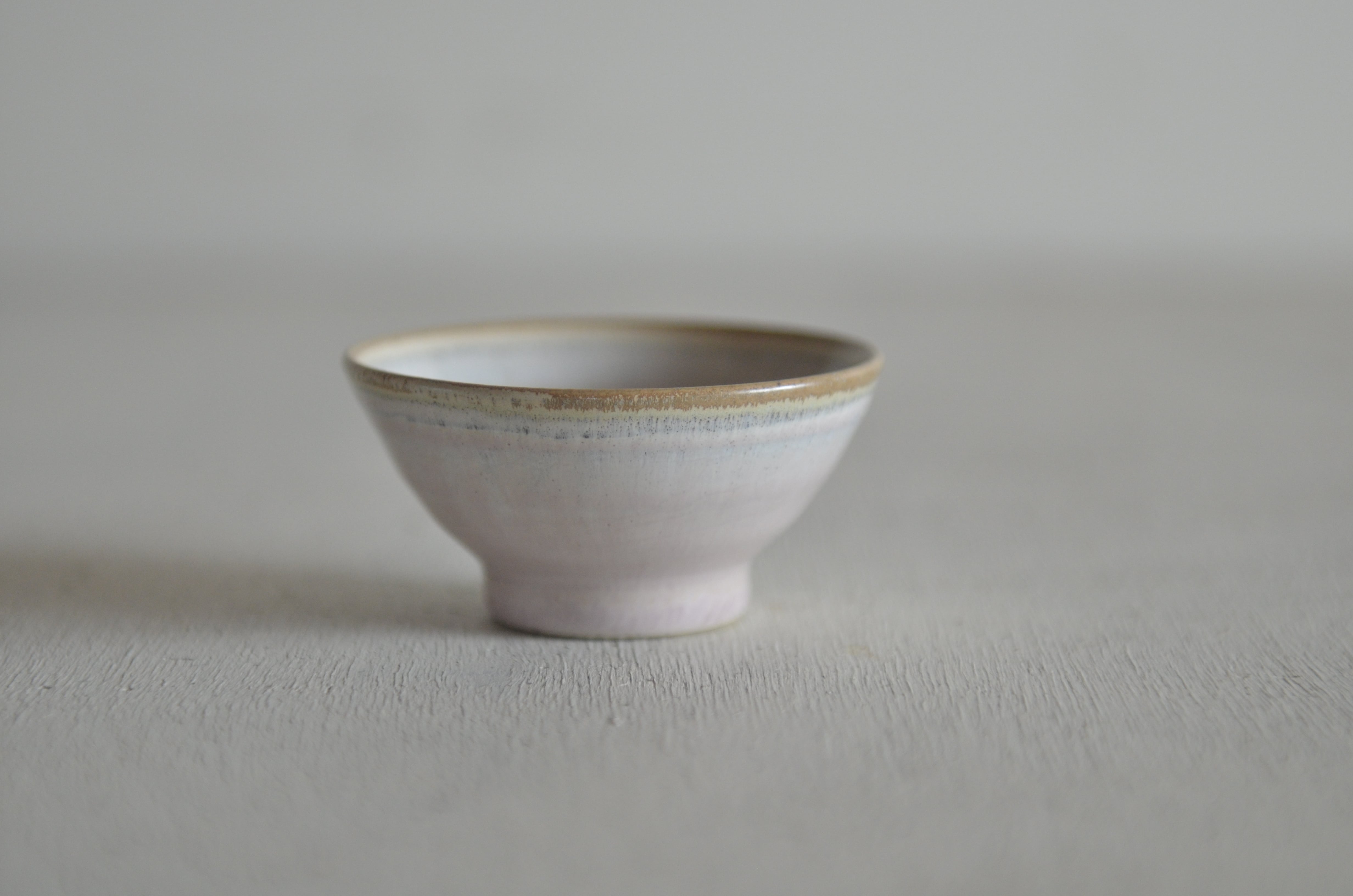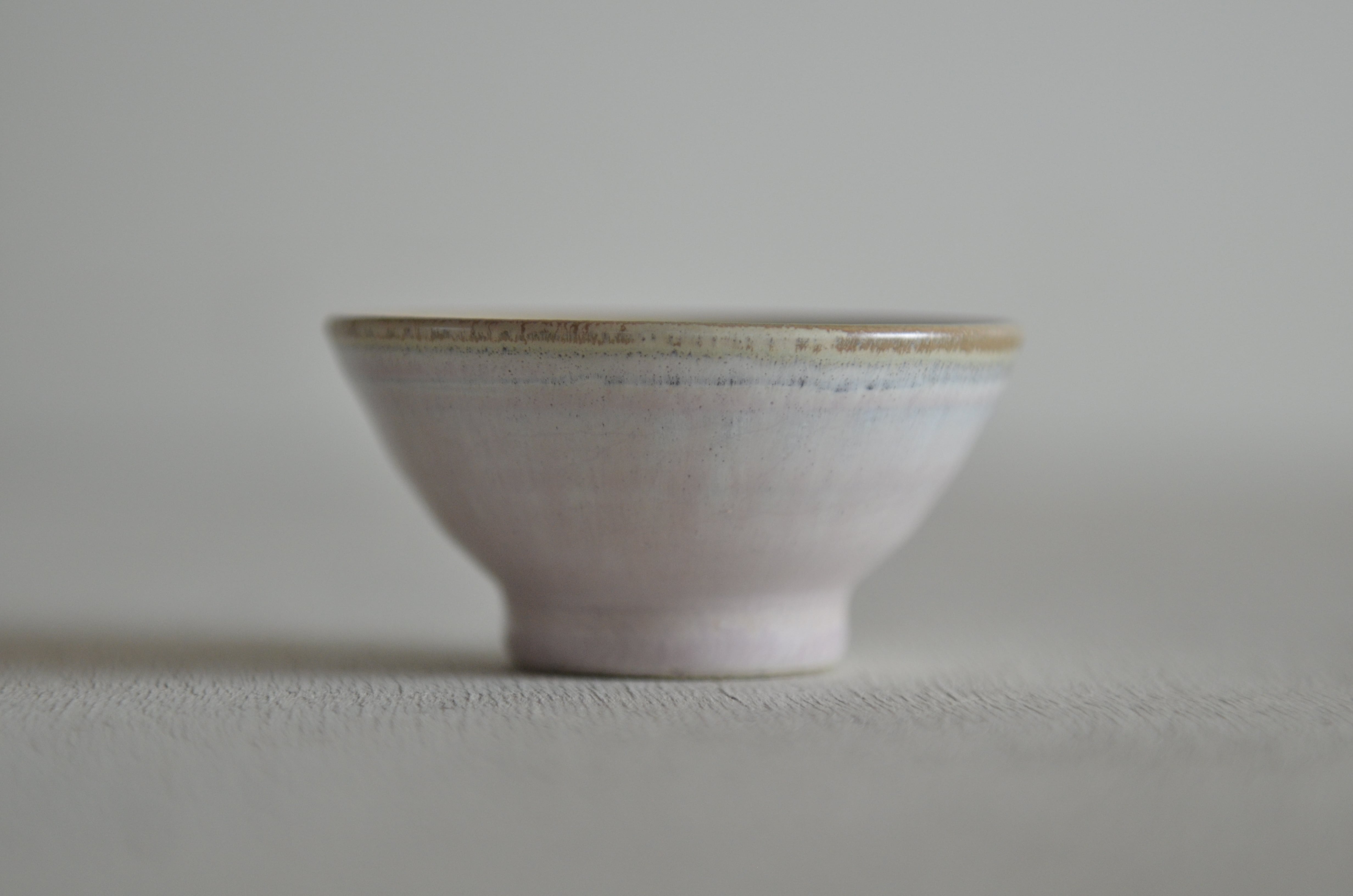 優雅な桃色のグラデーションが絡み合い、独特の表情を持つ器に仕上がりました。食卓に華やかさを添える逸品です。