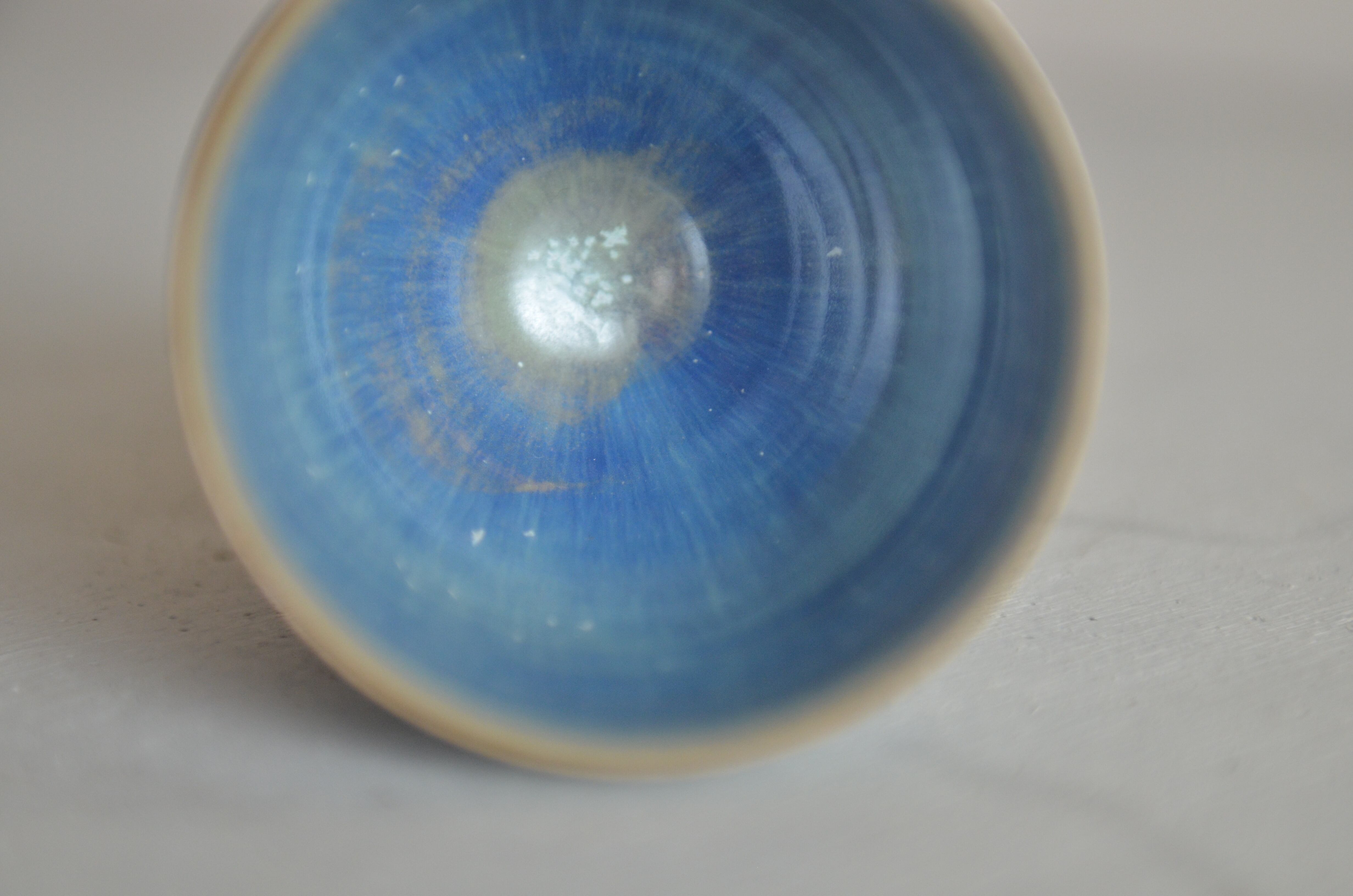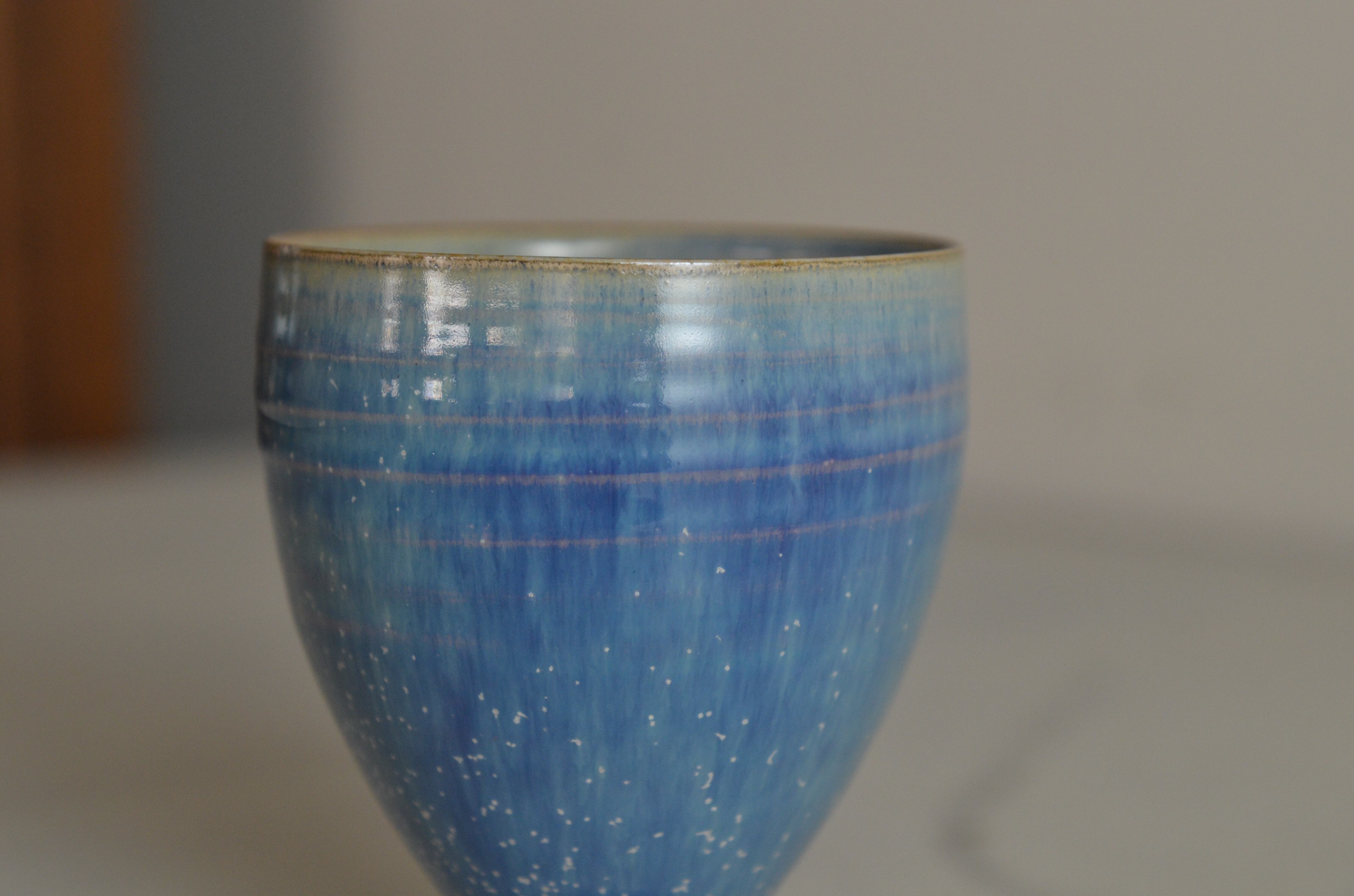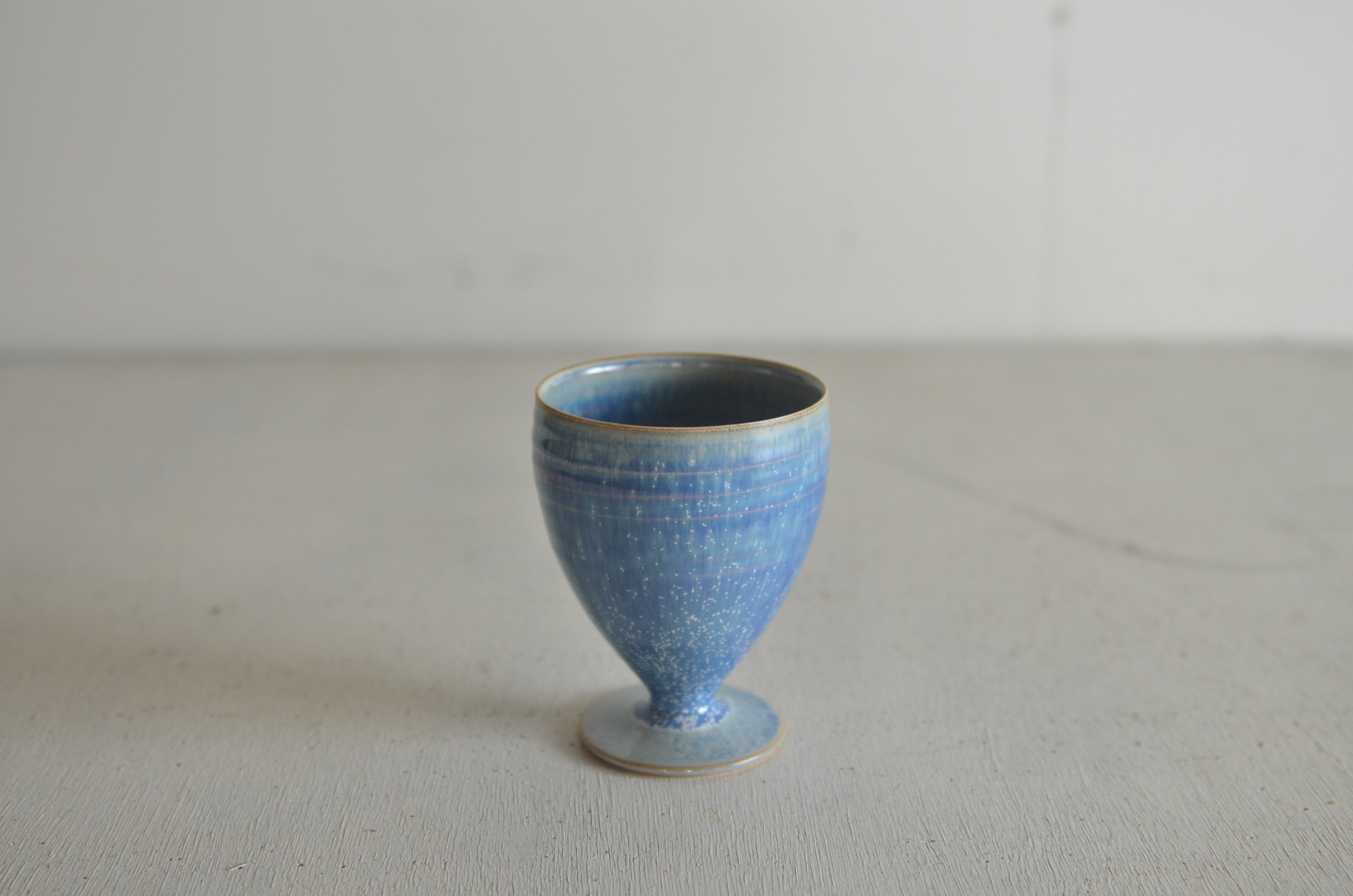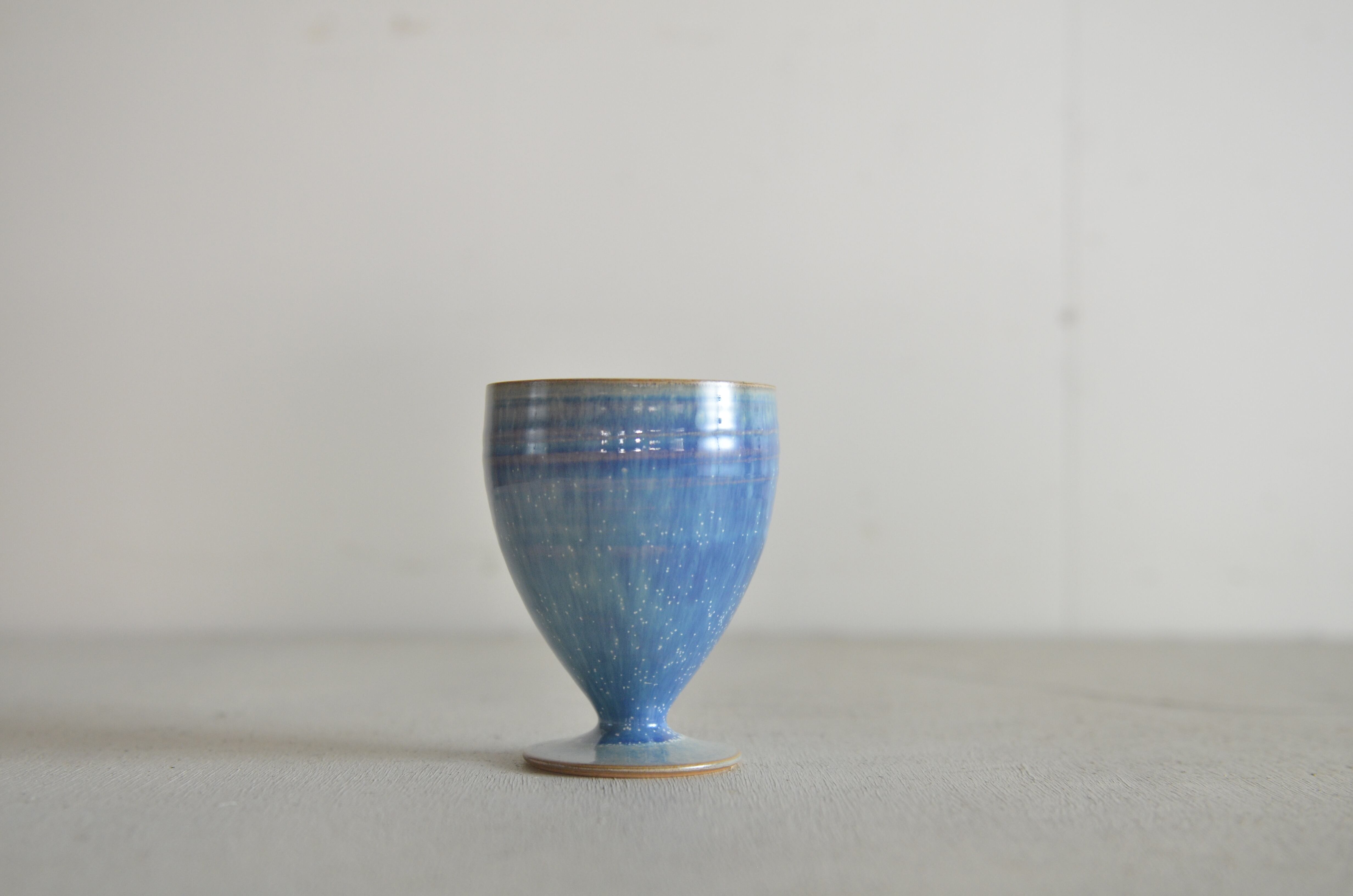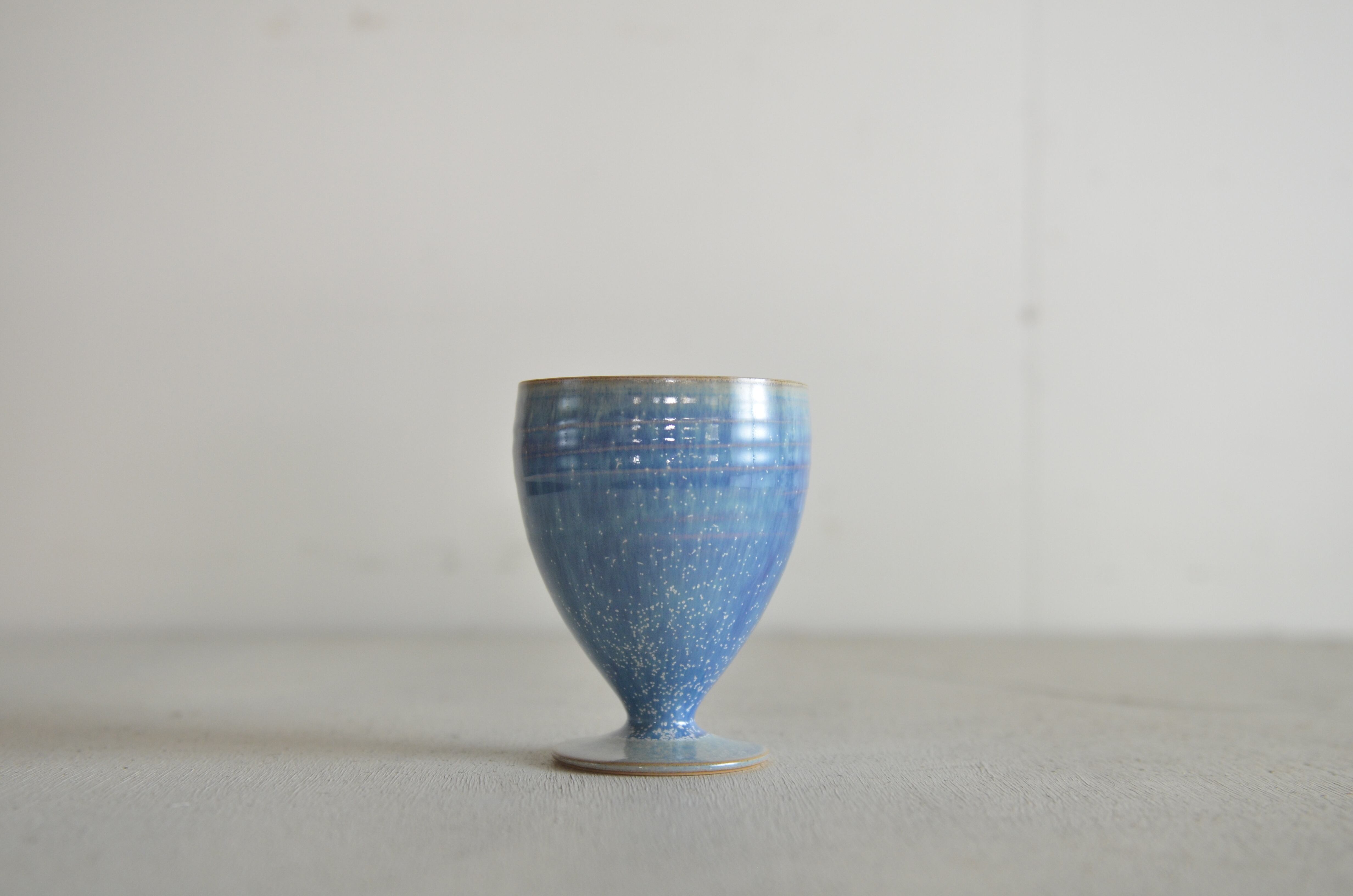 独特の形状と美しいデザインが魅力の葡萄酒杯です。蒼天釉による豊かな色合いが視覚を楽しませ、お酒の風味を一層引き立てるアイテムとなっています。特別なひとときにぴったりな逸品です。