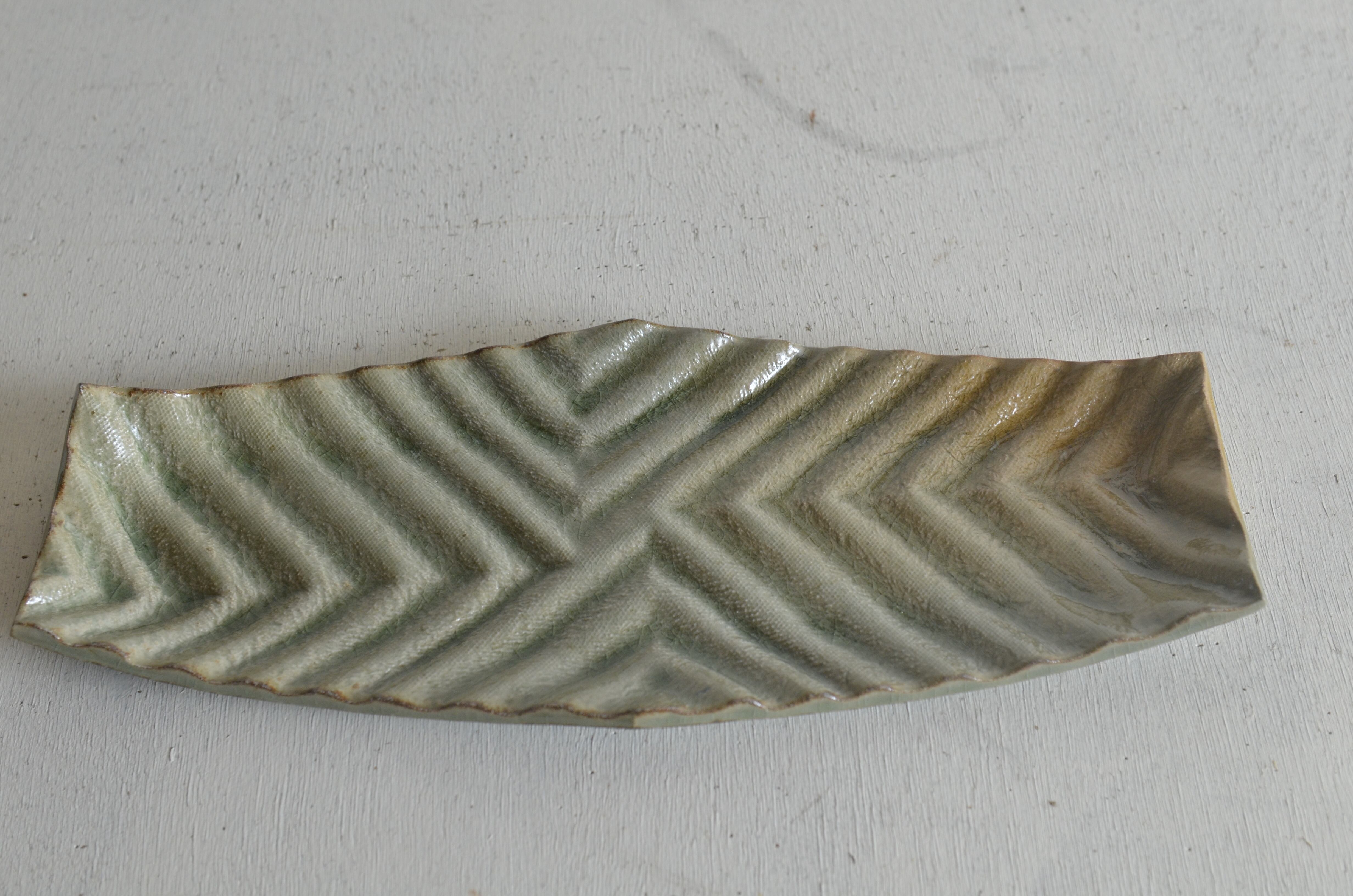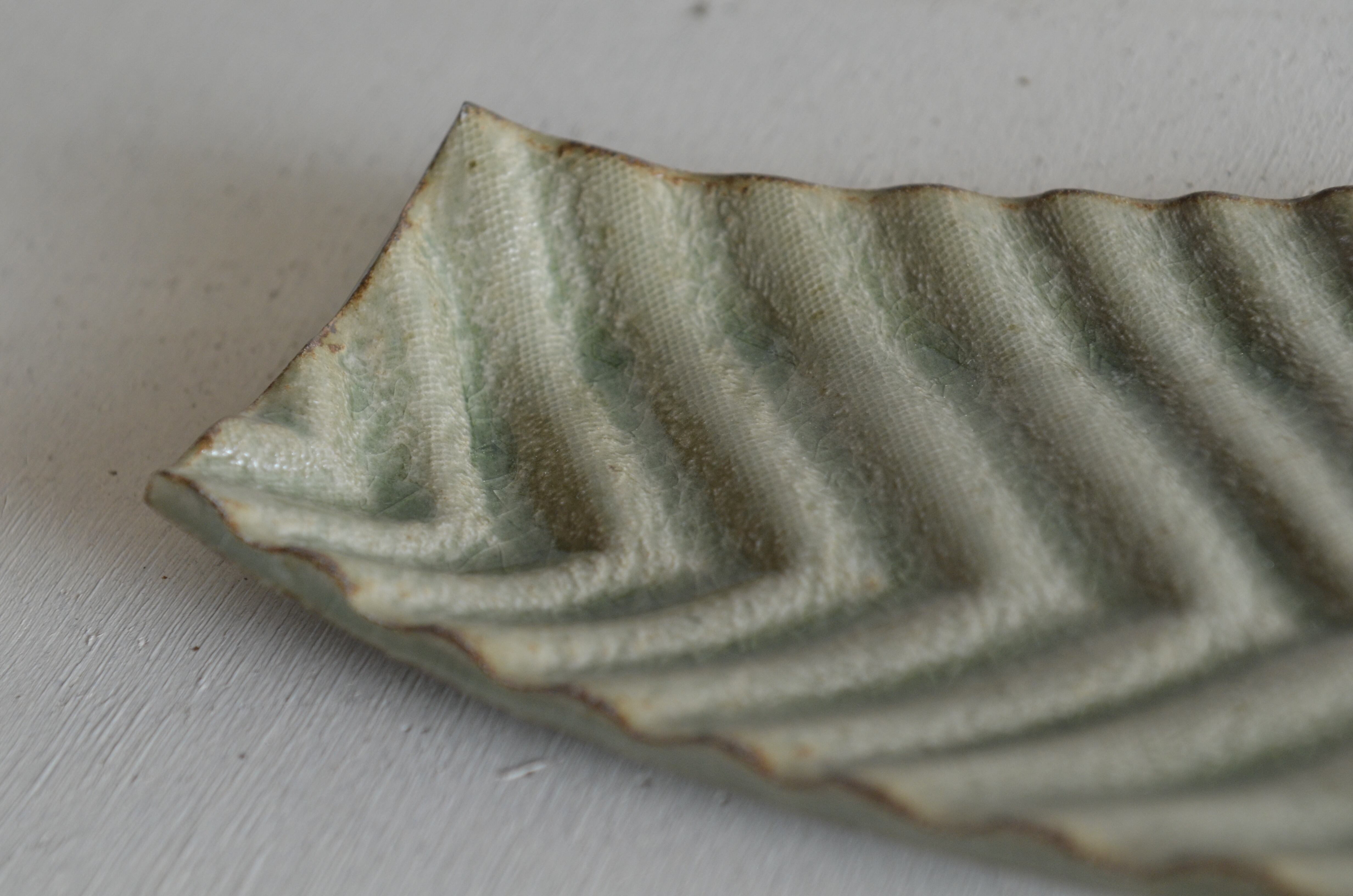 優れたデザインと独特の風合いが特徴の六角皿です。樫灰釉が施されたこの皿は、美しい波紋模様が施されており、料理の魅力を一層引き立てる存在感を含んでいます。六角形の形状は、和洋を問わずさまざまな料理にぴったり。特に前菜やデザートの盛り付けに最適で、食卓に華やかさを添え、特別なひとときを演出します。