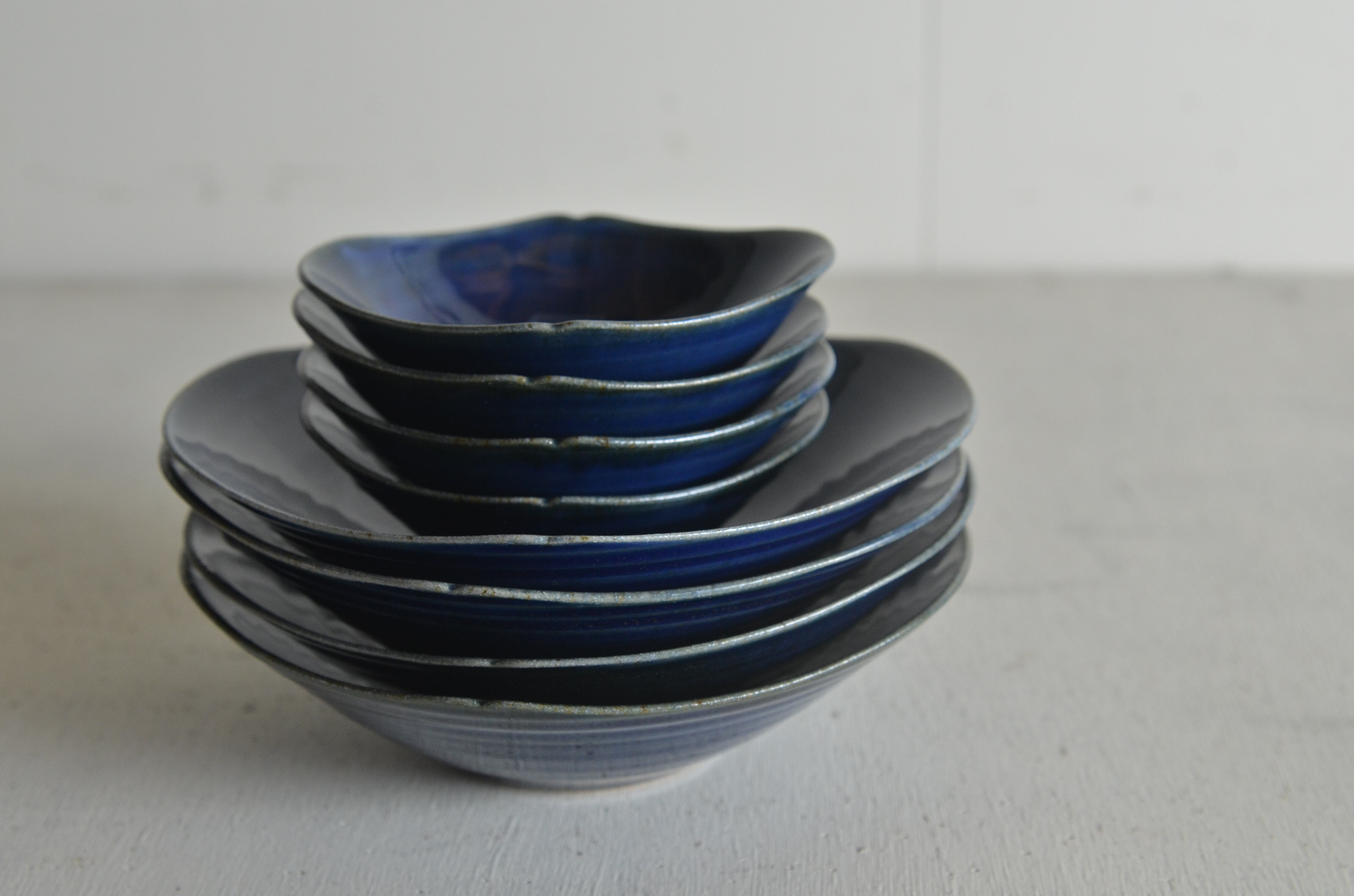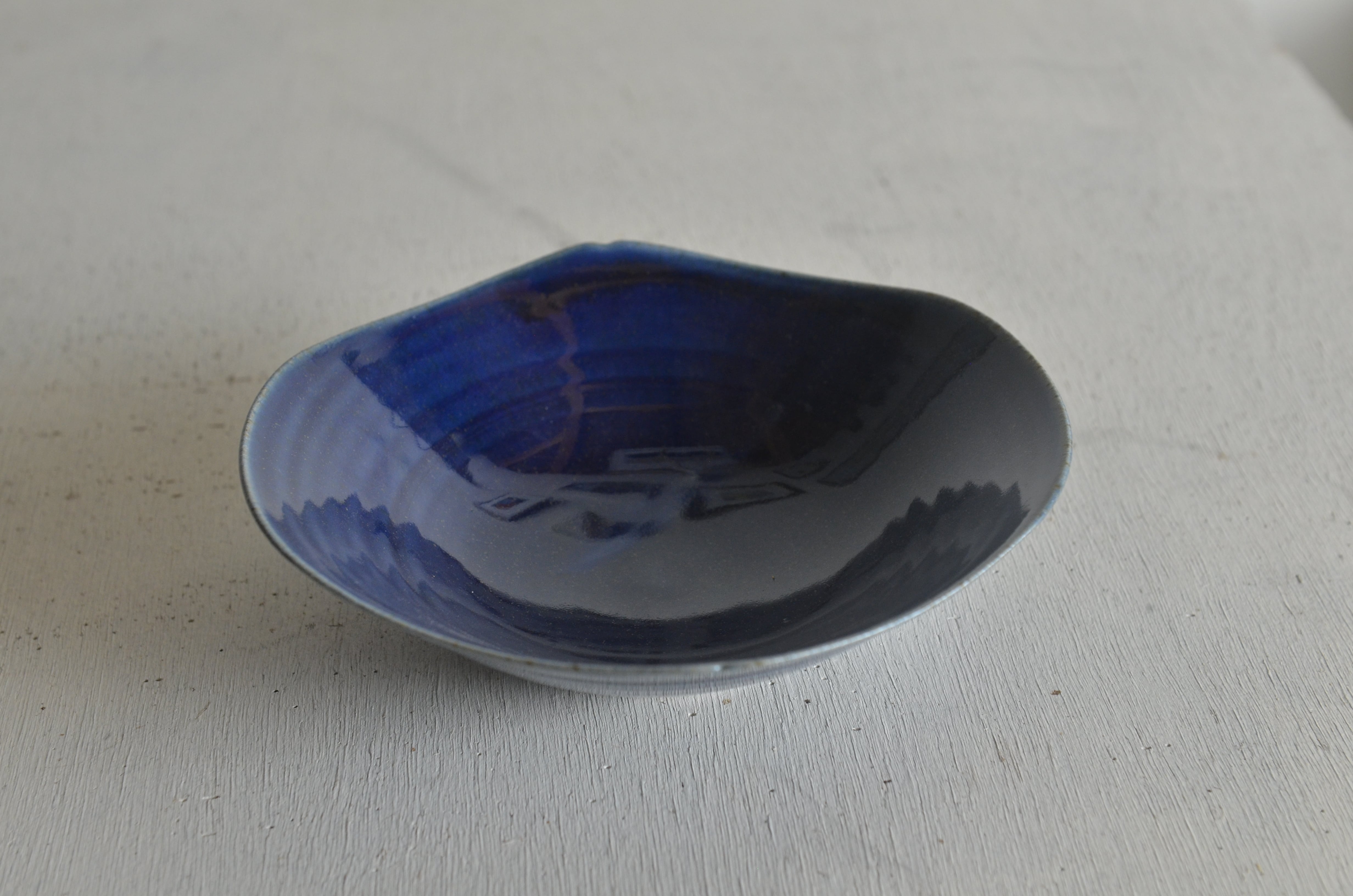 見野大介 雨燕釉(紺)6寸花菱鉢