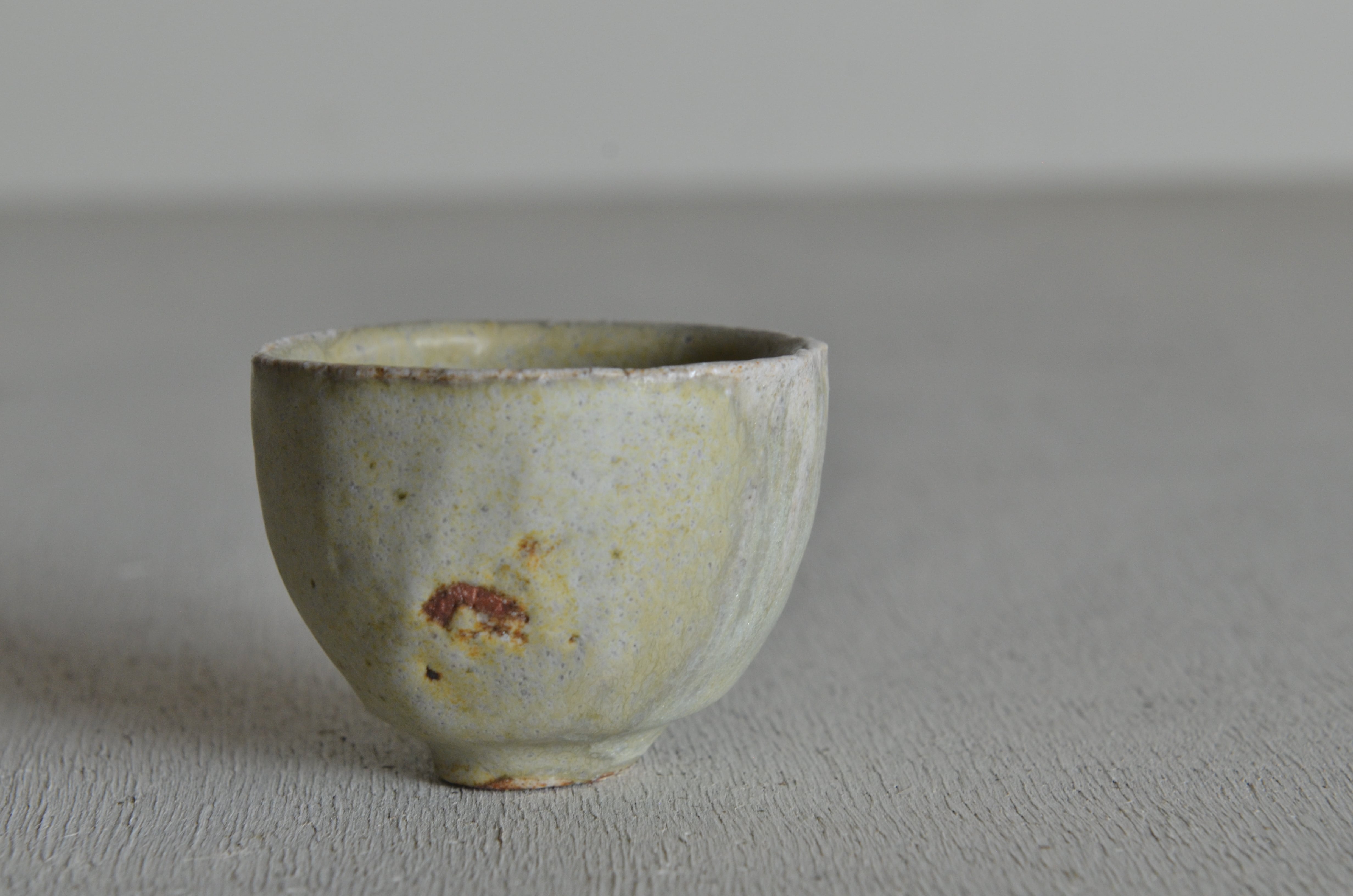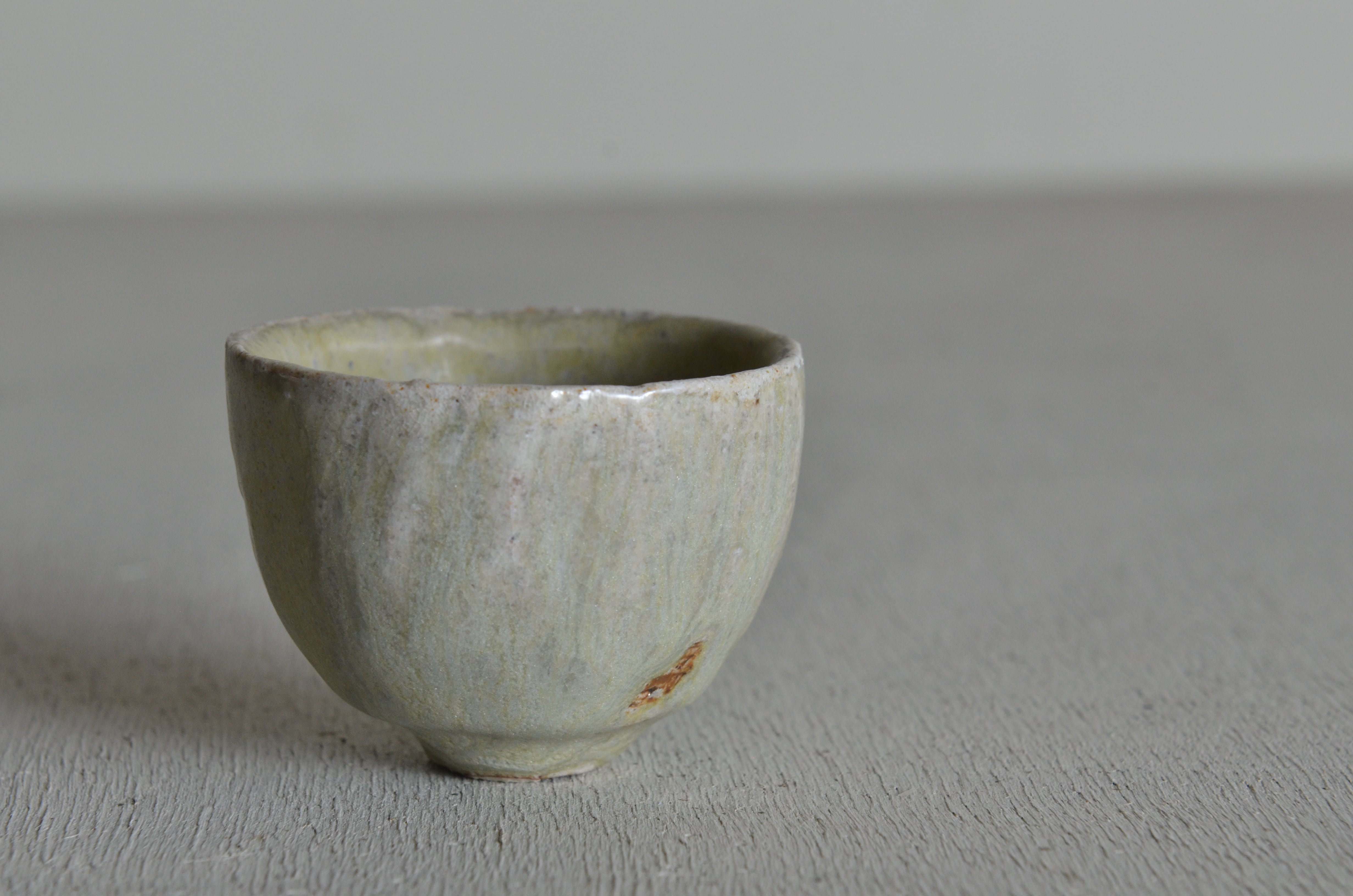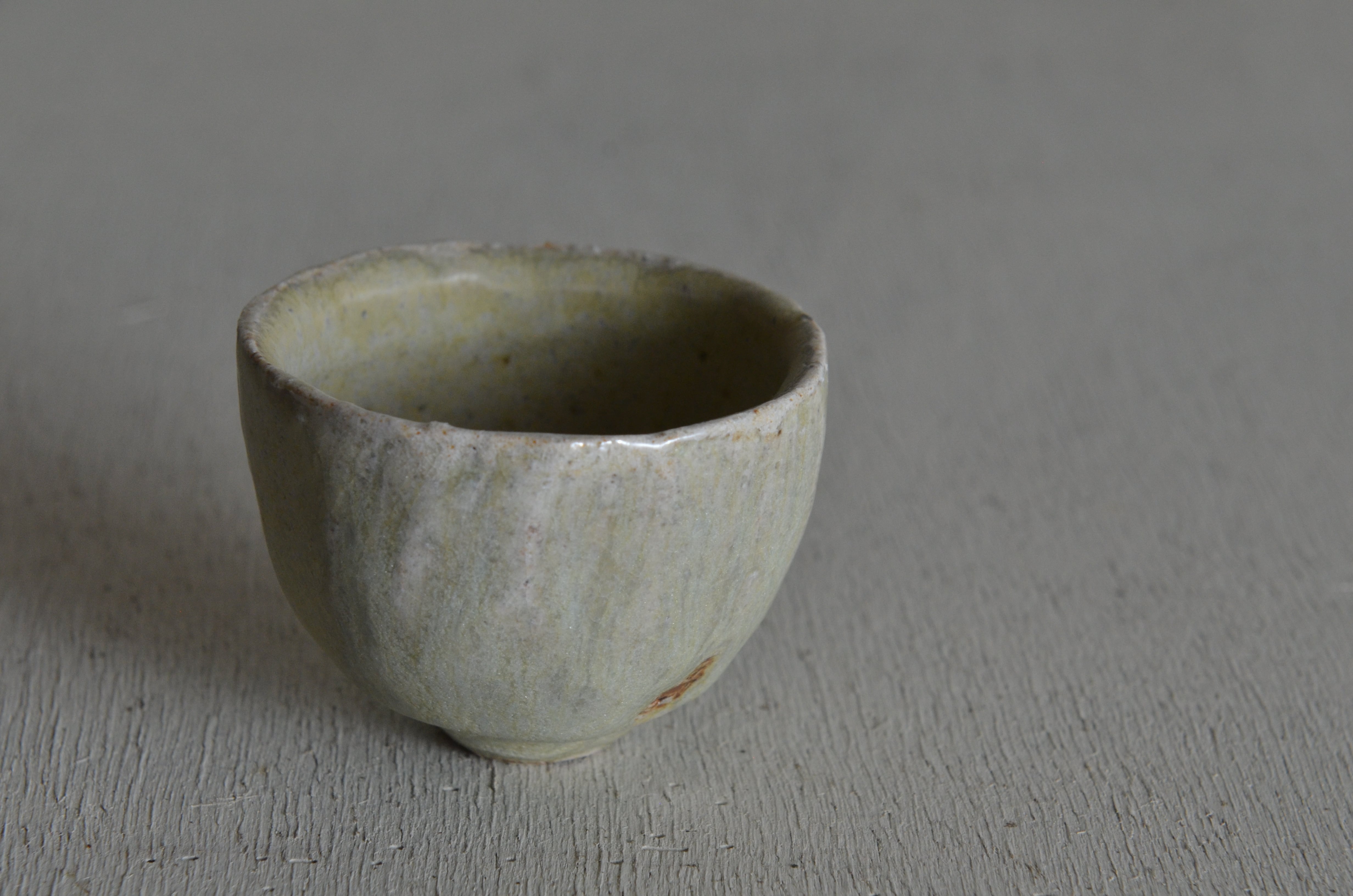 薪とガスのハイブリッド窯で焼成、ソーダ釉のぐい呑みです。釉薬のかかりと置き場所による焼き温度の違いで、表情が出ています。